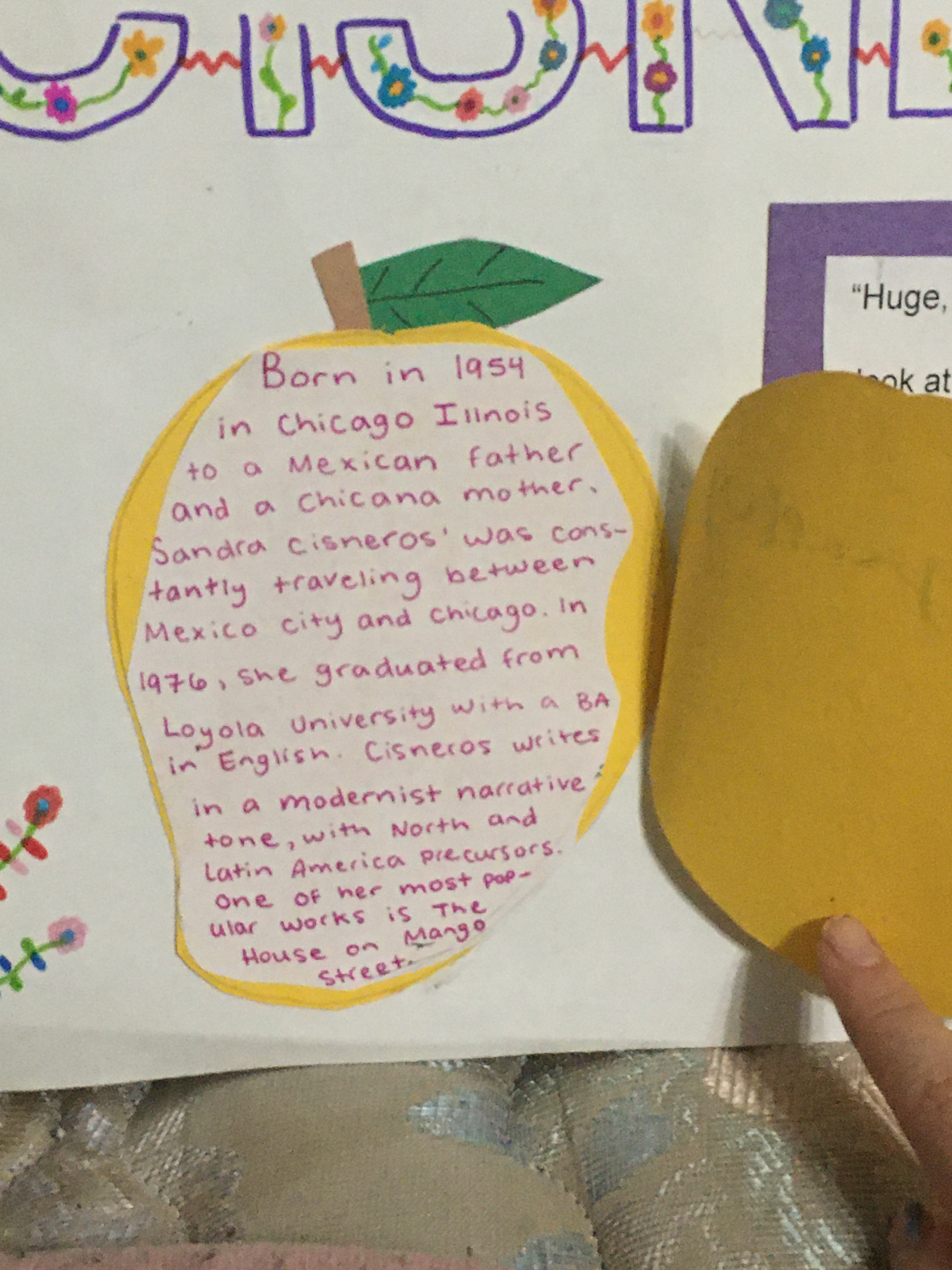 Another feature I like in this poem is the imagery Cisneros uses. Especially when they describe the situation Esperanzaās at, like the small details that people wouldnāt think matter, or are important. Like the fact that a yellow bird flew through an open window, or that it was hard to keep the floors clean. The language and the small details that make one think that it was an average or regular day, when in reality this familyās world was turned upside down.